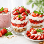 •Frutas: Morangos, bananas, mirtilos para doçura natural, fibras e vitaminas.